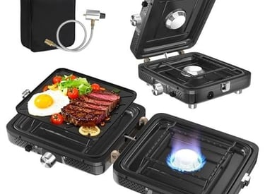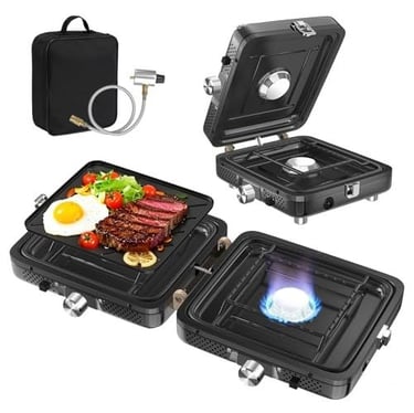 Camping Stove - 2-Burner Propane Camp Stove with Push-Button Instant Ignition,Adjustable Stove with Carry Bag & Handle for Outdoor Tailgating, Backyard BBQ Camping Essentials