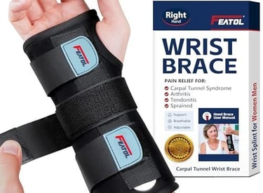 FEATOL Wrist Brace Hand Brace, Carpal Tunnel Wrist Splint Night Support for Women Men, Pain Relief Support