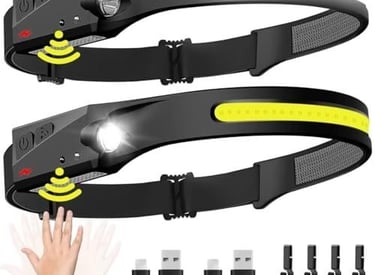 Headlamp Rechargeable 2PCS, 230° Wide Beam Head Lamp LED with Motion Sensor for Adults - Camping Accessories Gear, Waterproof Head Light